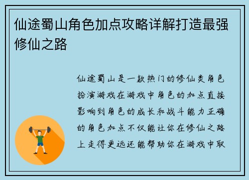 仙途蜀山角色加点攻略详解打造最强修仙之路