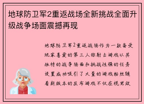 地球防卫军2重返战场全新挑战全面升级战争场面震撼再现